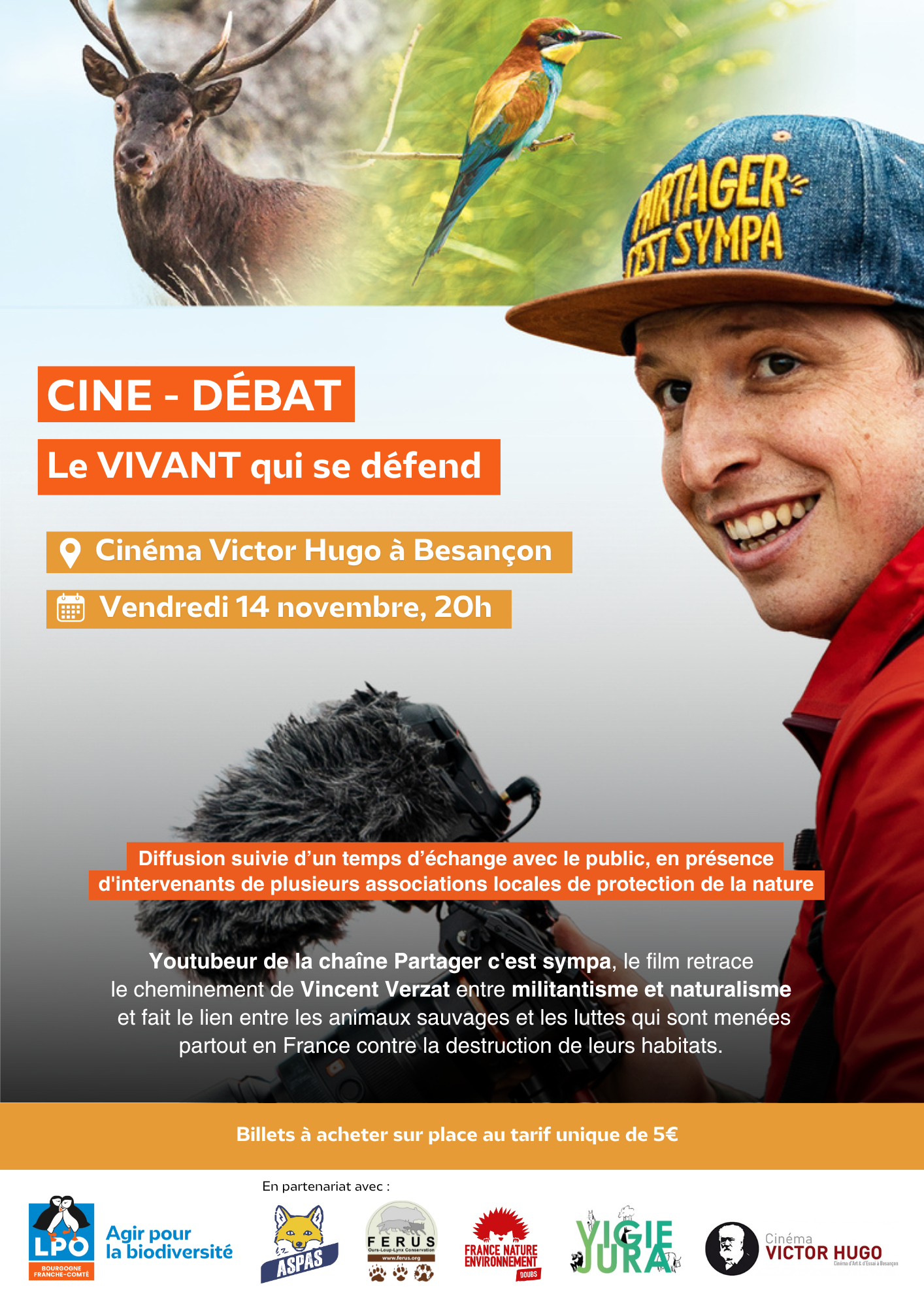 La projection sera suivie d’un temps d’échange avec la LPO Bourgogne-Franche-Comté, FNE Doubs et d’autres associations locales engagées pour la protection de la nature ![]()